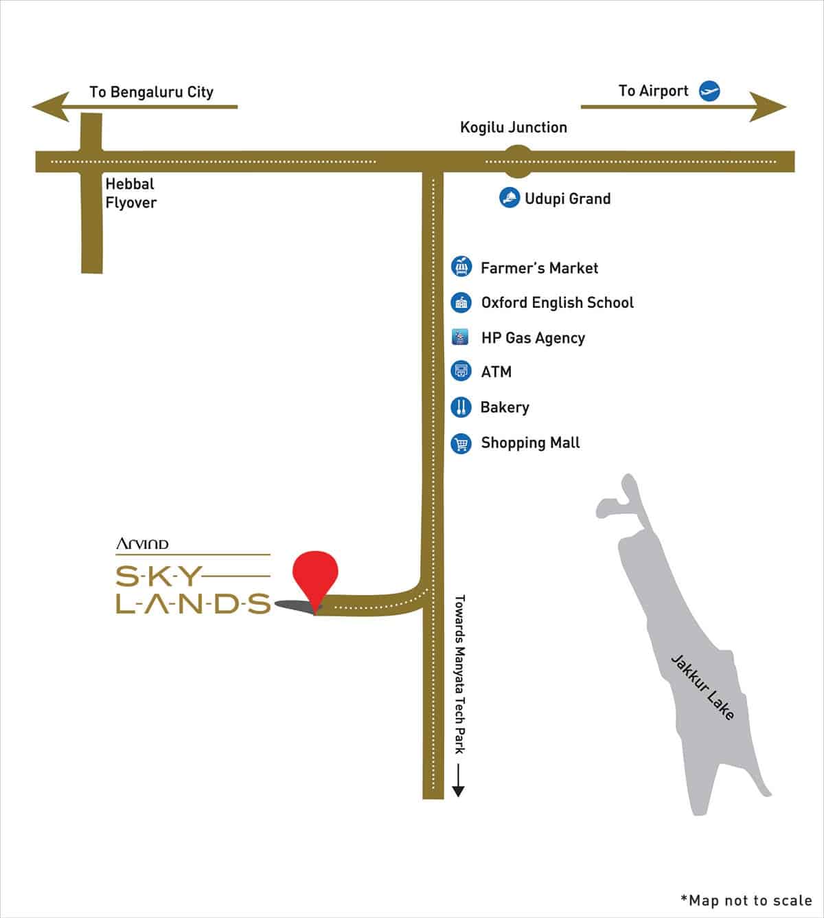 One of the best, and also the most attractive feature of Arvind Skylands, is its location. The project, which is located in Jakkur, north Bangalore, is proximal to Manyata Tech Park, and other northern Bangalorean regions such as Yelahanka, Airport Road, Kempegowda International Airport, Outer Ring Road, and Thanisandra.