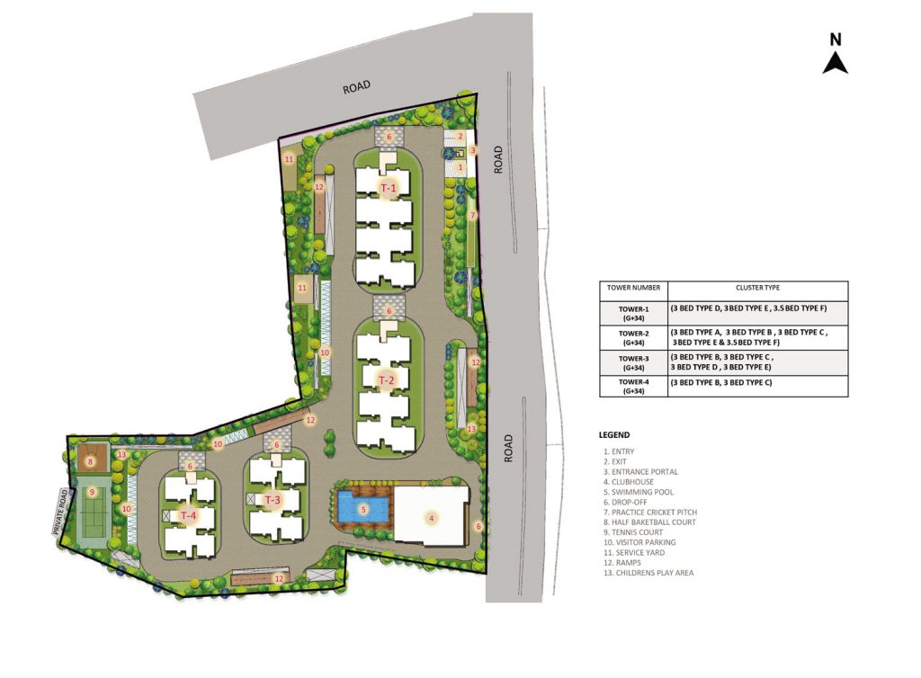 According to the floor plan of Prestige Tranquil, Hyderabad, there are 906 units of 3 and 3.5 BHK, across 4 towers in the layout B + G + 35 Floors.