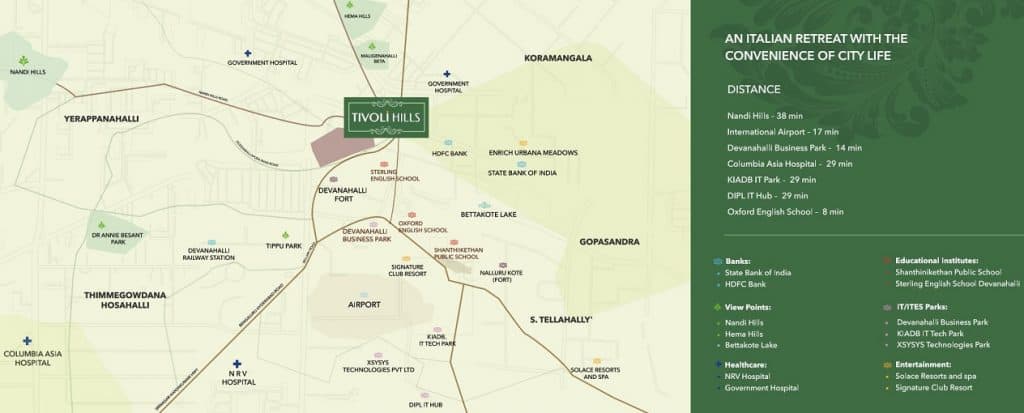 It is located right at the mouth of Devanahalli which is at the crux of Bangalore, Bellary Road, Yelahanka, Doddaballapura Road, and other existing residential and commercial landmarks, and offers excellent connectivity to other major roads & airports.